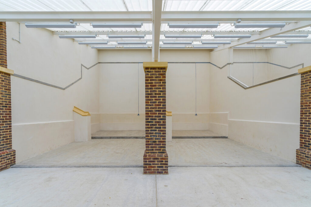 • The courts’ steel frame, brick, and blockwork walls were erected with precision to meet the stringent regulatory dimensions required for Eton Fives courts.