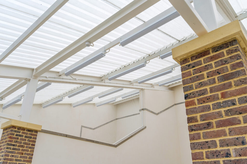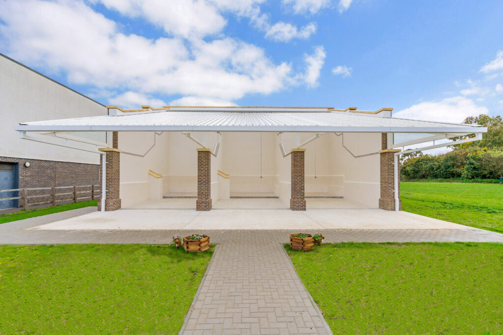• Roofing panels were installed to provide weather protection, complemented by bespoke metal gutters and downpipes, enabling play in all weather conditions.